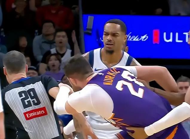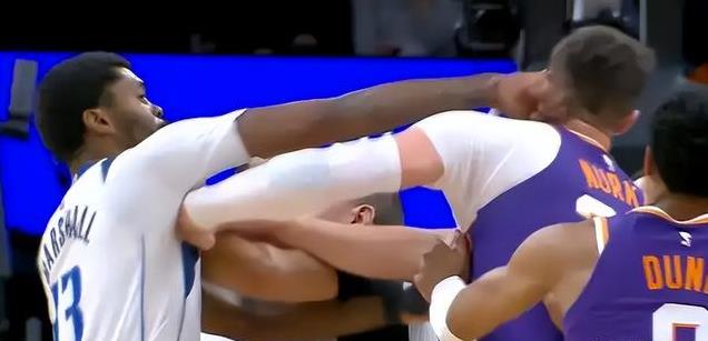 比赛进行到第 3 节还剩 9 分 02 秒时,场上比分是 60 : 44,太阳队大比分落后。在这种紧张的局势下,球员们的情绪都有些紧绷。努尔基奇和马绍尔之间原本就互相看不顺眼,连续两个回合的小摩擦,裁判都没有及时制止,这无疑为冲突埋下了隐患。
