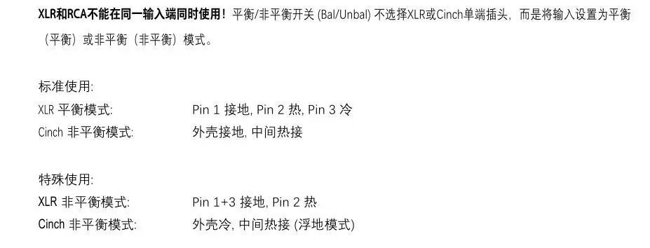另一个平衡和非平衡的拨杆,并非常规意义的单端或平衡接口切换,而是严格的平衡、非平衡线路的切换(稍微举例,会存在XLR接口的线材,使用非平衡接法,这时候即便头子看着是平衡插头,用的话也是要拨到Unbal非平衡档位的),所以,平衡线和单端线,可以分别接驳两个输入通道,但不能同时接入同一个输入通道。