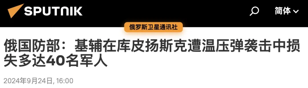 当地时间9月23日,俄罗斯武装力量出动一架战机使用了ODAB-1500型温压弹对库皮扬斯克附近的乌军临时驻扎点进行了空袭,本次袭击造成了多达40名乌军和5台设备被摧毁。