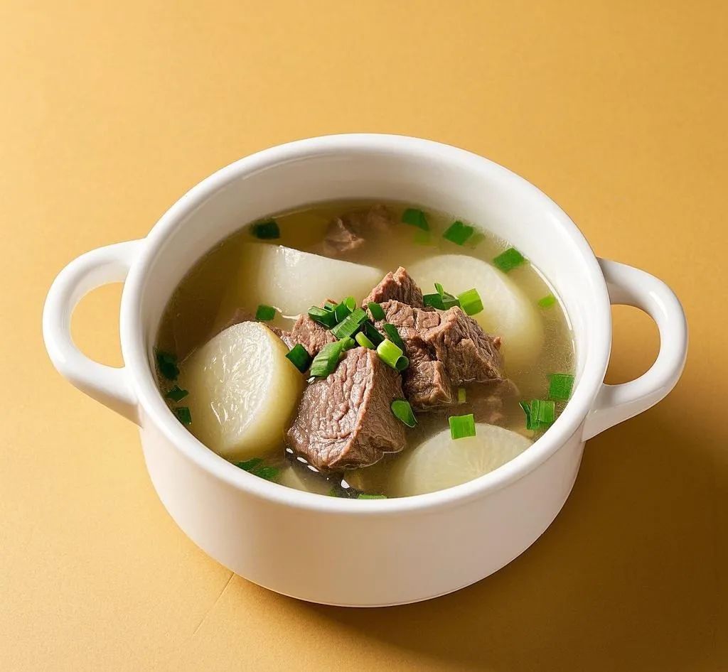 所需材料:新鲜白萝卜1根(约500克),去皮切块、牛肉500克,切块,焯水去血水、生姜3片、葱段2根、料酒适量、盐适量、清水适量