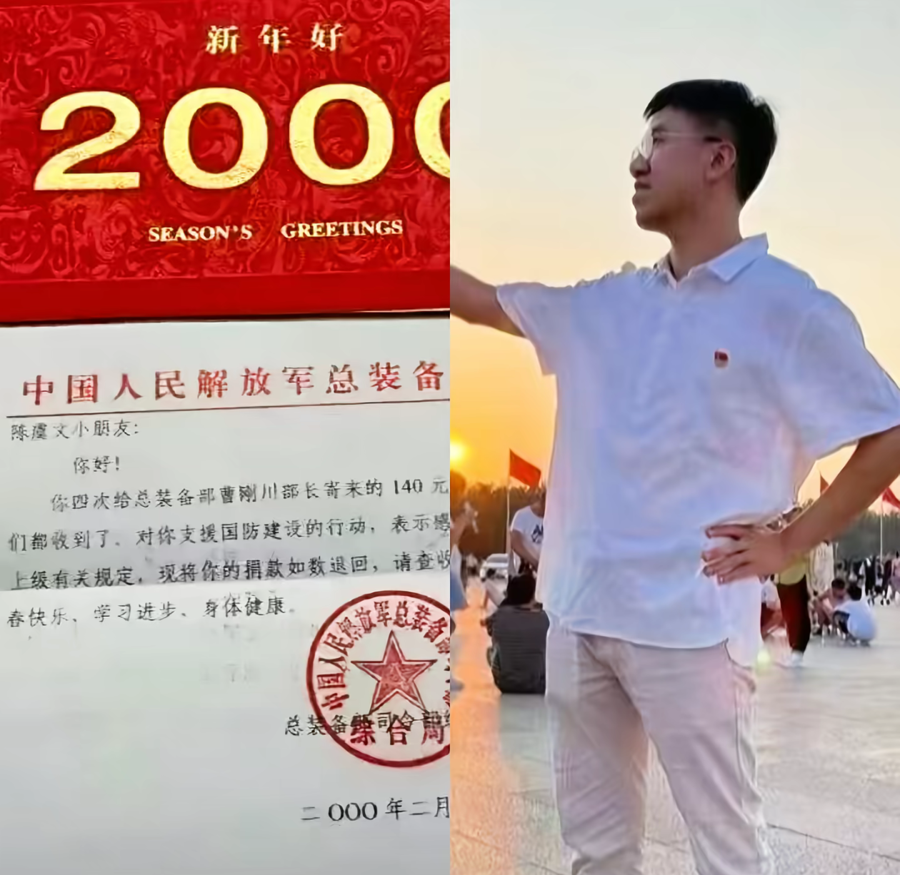 寄完钱后,陈虞文每天都盼着消息。没过多久,他收到了一封特殊的回信——来自解放军总装备部。信中,工作人员温和地说明了捐款按规定无法接收的情况,将140元钱原封退回,还特意附上了一张精致的新年贺卡,字里行间满是对孩子这份爱国之心的肯定与感谢。这封回信和贺卡,被陈虞文小心珍藏起来,成为了童年最珍贵的纪念,也让他心中的爱国情怀愈发坚定。