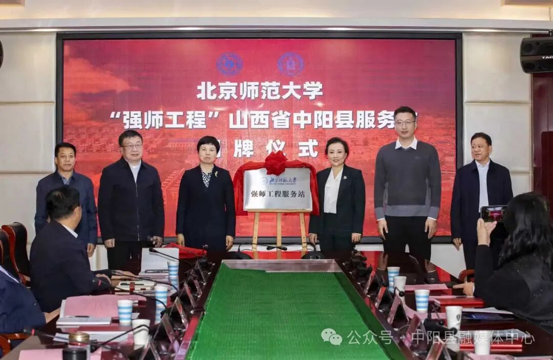 10月23日,北京师范大学“强师工程”中阳县服务站揭牌仪式在中阳一中举行。北京师范大学“强师工程”办公室主任隋璐璐及相关校院负责人,省教育厅二级巡视员徐岩章,市教育局局长赵雪宏,政府县长孙燕飞,县委常委、政府副县长任海涛等领导出席,并一同为北京师范大学“强师工程”中阳县服务站揭牌,标志着这一意义重大的教育合作项目在我县正式扬帆起航。