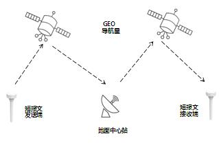 终端将信号上传至最近的北斗GEO/IGSO卫星。
