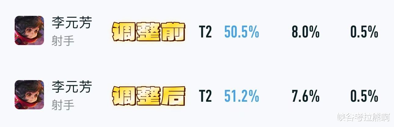 以上就是本次三位射手调整的全部内容以及胜率变化,狄仁杰的可玩性确实提高了不少,也算苦尽甘来,李元芳虽说胜率提升,但没后期的问题依旧严重,反观艾琳就真的是纯降温削弱了,这一点大家一定要注意。