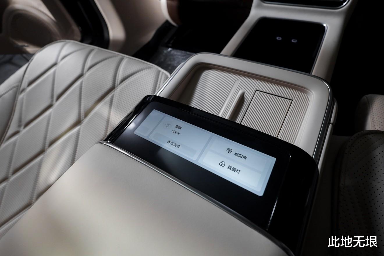 车内中央智能控制岛台上集成了13.7L智能冷暖冰箱,温控范围覆盖了-18℃至50℃,同时配备隐藏式桌板、50W无线充电、隐私玻璃、电动尾门等配置,形成商务、休憩、办公、生活多功能场景覆盖。