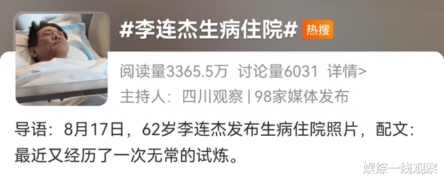 8月17日上午11点,李连杰在社交账号发了一张躺在病床上的照片,并配文“最近又经历了一次无常的试炼”。那条动态像投入湖面的石子,瞬间让相关话题冲上微博热搜,评论区里满是网友“杰哥保重”的牵挂。