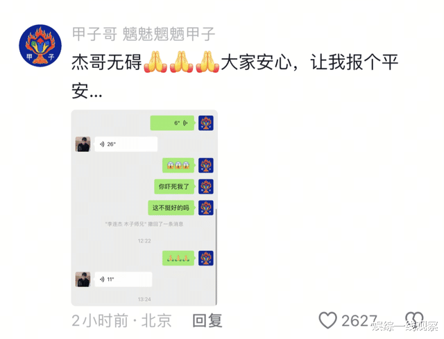 随后,李连杰的好友甲子哥在评论区晒出聊天记录报平安:“杰哥无碍,大家安心,让我报个平安”,还回复网友说他能吃能喝,很顺利,很快就会和大家见面。就连交情深厚的向太也特意跟媒体透露,李连杰只是长了个良性小肉瘤,割了就没事了,字里行间都是对大家关心的感谢。