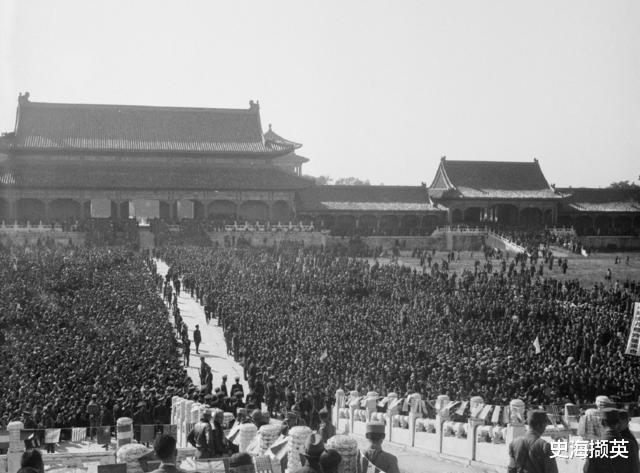 景山上汽笛长鸣,太和殿前礼炮响起,军乐队奏乐,举行升旗礼奏国歌仪式,之后在场的人们肃立为抗战中牺牲的烈士默哀。从民国二十六年(1937年)7月7日的卢沟桥到民国三十四年(1945年)10月10日的太和殿,这场伟大的胜利仪式北平人民整整盼了8年。
