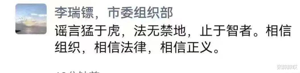 戴璐的老公在朋友圈说:谣言猛于虎,法无禁地,止于智者。相信组织,相信法律,相信正义。