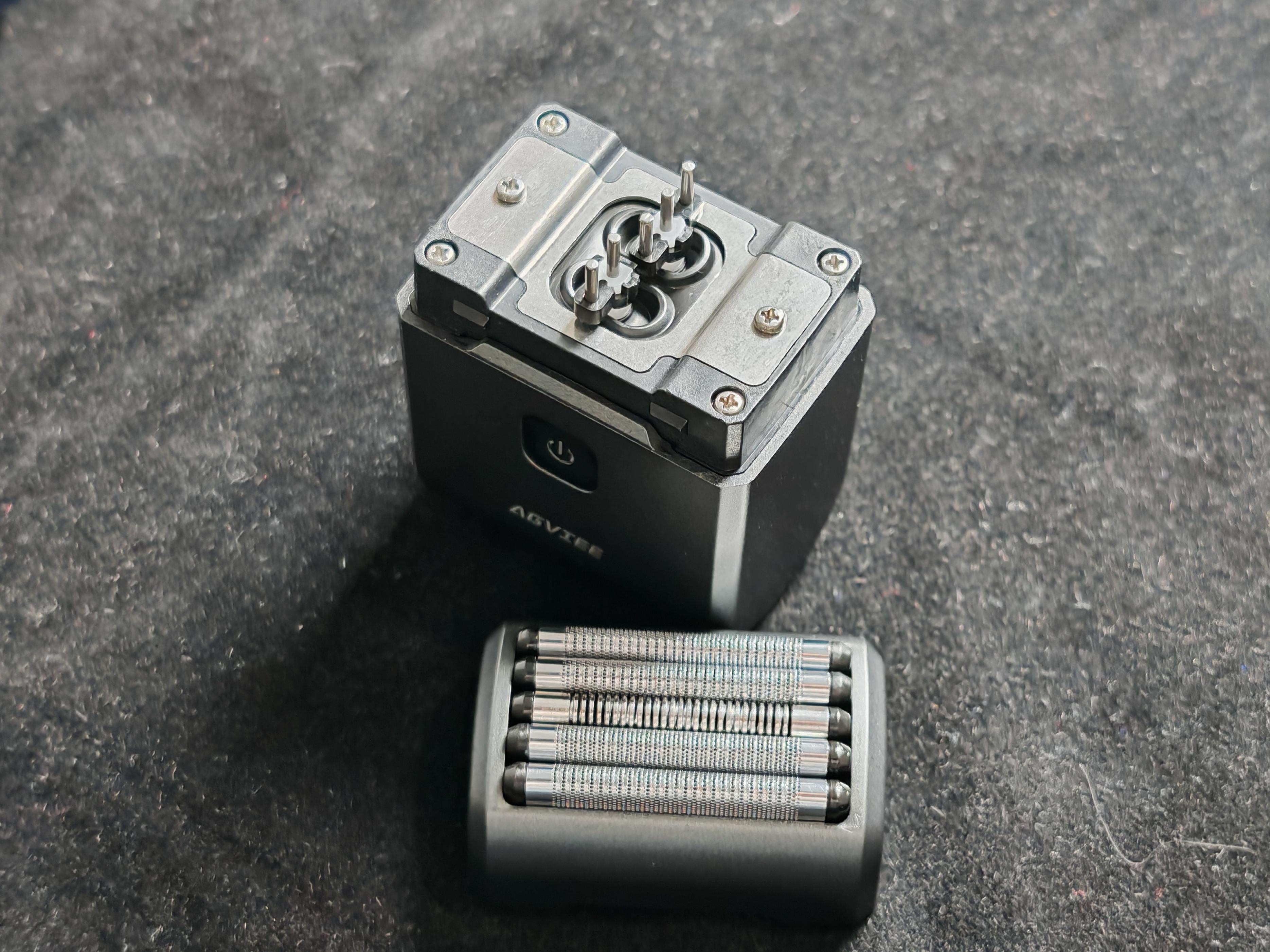 拿到未野MRXmini的第一感觉,就是“简约但不简单”。包装是深灰黑的极简风格,透着一股科技感,拆开后,刀身比我想象中还小巧,单手就能握住,黑灰色金属机身摸起来冰凉又扎实,不像有些塑料机身那样轻飘飘的没质感。配件也很实在,USB-C充电线、清洁刷、收纳袋一样不少,收纳袋还是防水的,出差旅行时往包里一塞,不占地方还干净。机身就一个按钮,短按开机,操作简单到不用看说明书,开机时刀头会先低速运行两秒再进入正常状态,这个小细节特别贴心,能避免瞬间启动刺激皮肤。
