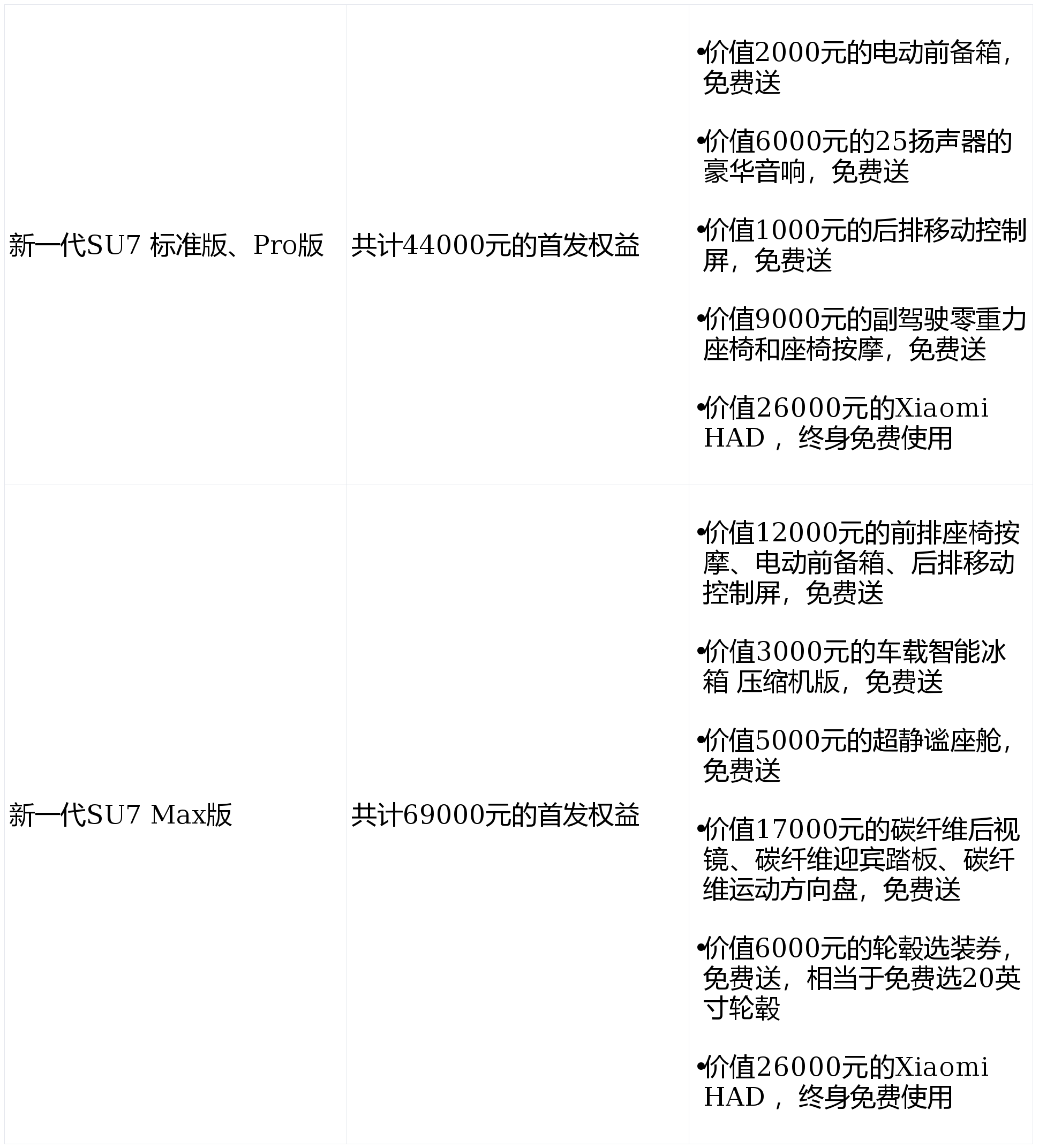 我们还为小米的老车主准备了增换购权益,小米汽车首任车主,增购或换购新一代SU7,赠送20000积分(价值2000元)