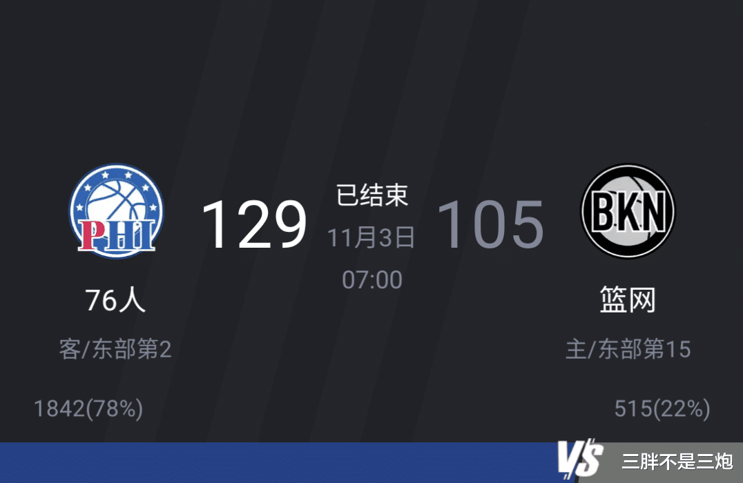 76人:全队129分、总命中率52.1% 、三分命中率37.5%