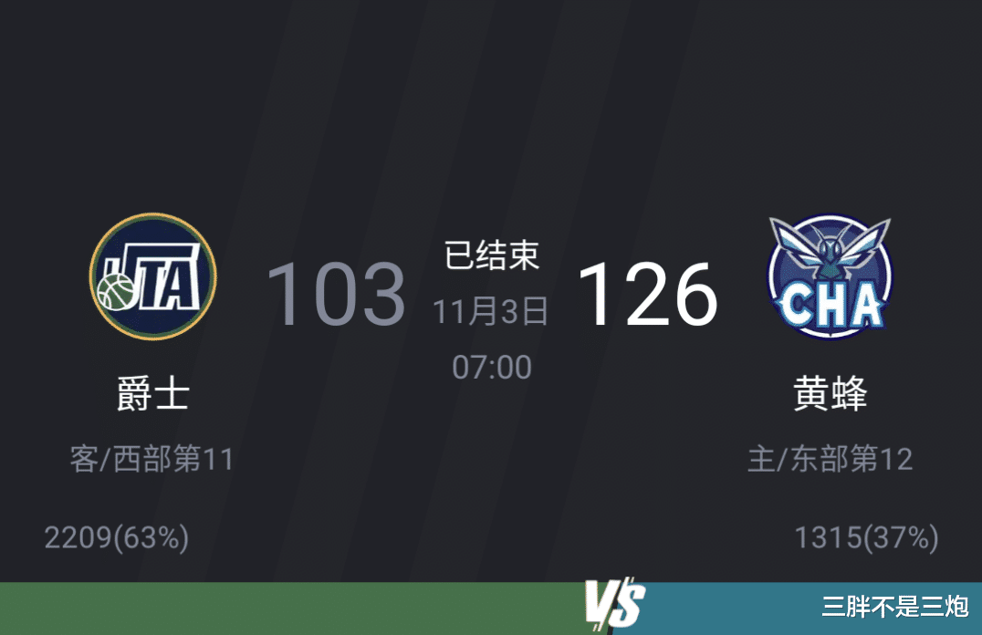 爵士:全队103分、总命中率40.9% 、三分命中率21.9%