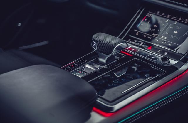 奥迪Q8的整体内饰并没有像一些豪华SUV一样采用了大量的真皮和实木,取而代之的是科技感和豪华感兼顾的金属拉丝和钢琴烤漆材质,虽然这样做让整个Q8的中控部台成为了一个大型的指纹收集器,但是真的很香。