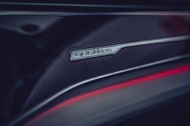 在细节方面奥迪的灯永远是大家关注的焦点,Q8也不例外——全系标配LED光源,选装的HD矩阵式LED大灯中各有24个独立LED,而大灯的边缘装有七短两长的LED发光原件,细节感十足。但是个人认为尾部的灯光比头部更加值得关注,贯穿式OLED光源尾灯配以顶部扰流板,整体彰显运动。可能奥迪认为,把尾灯做的这么漂亮可以让后车只顾着欣赏而忘记了超车吧。