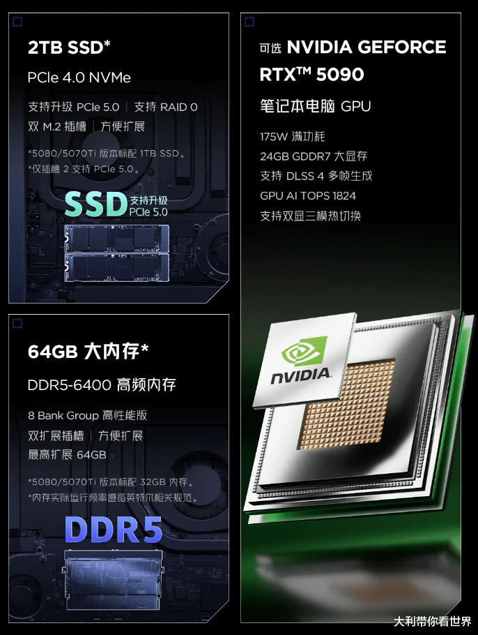 接下来讲讲显卡,其有RTX5070Ti、5080以及5090这三个版本,以便用户依据自身需求挑选合适的显卡来进行搭配。