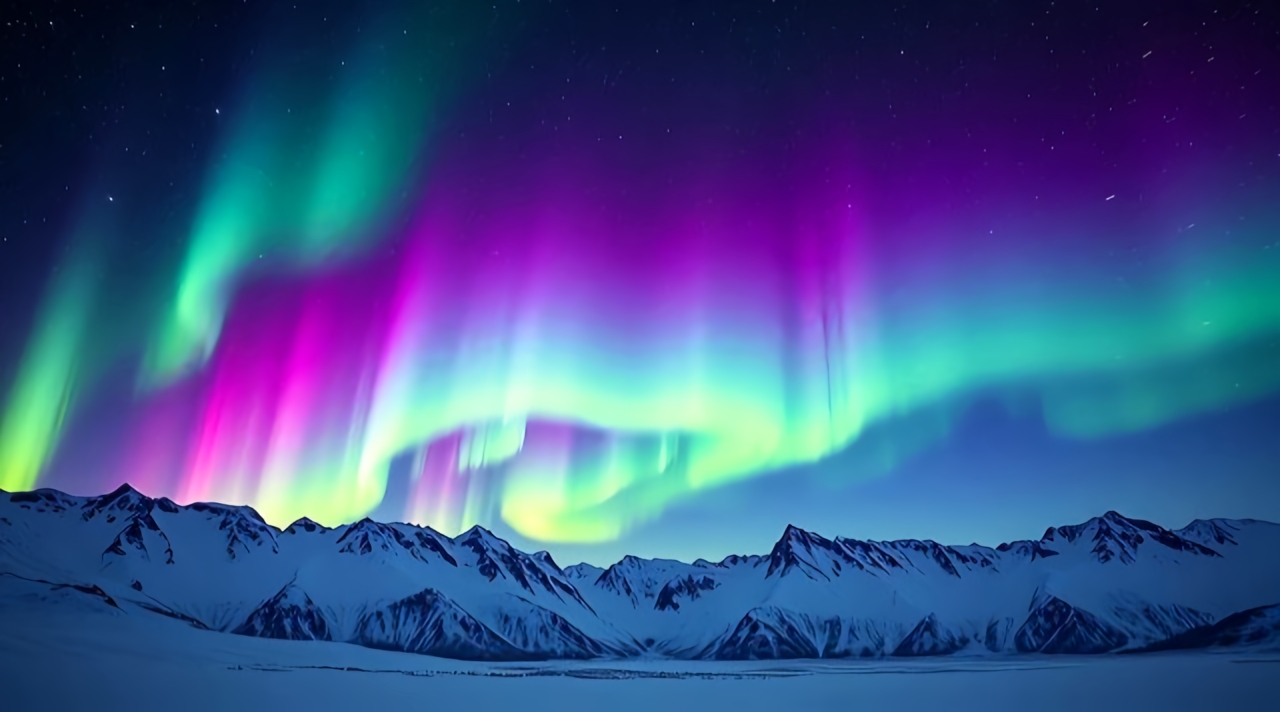 极光的颜色由碰撞的气体种类和高度决定:氧原子在100-250公里高空释放绿色光芒,这是最常见的极光颜色;在更高的250-400公里高空,氧原子会发出红色光芒;氮分子则多产生蓝色或紫色的光。极光的形态受太阳风强度和地磁活动影响,强太阳风暴来临时,极光会变得更加明亮,甚至能在中低纬度地区观测到。