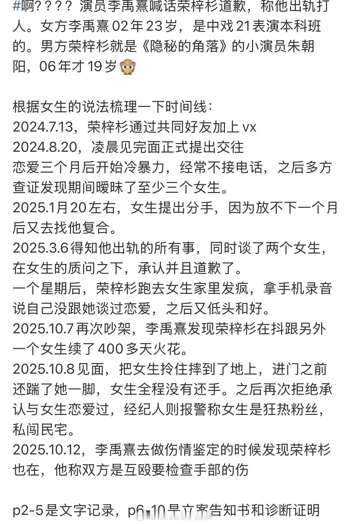 荣梓杉被爆恋爱期间出轨打人[吃惊]