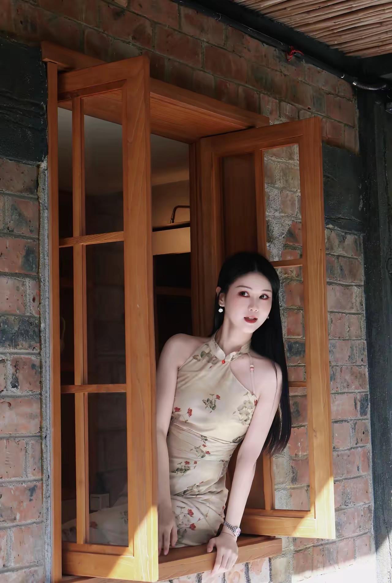 窗边沉思,静谧时光,蕾丝裙摆随风飘逸。