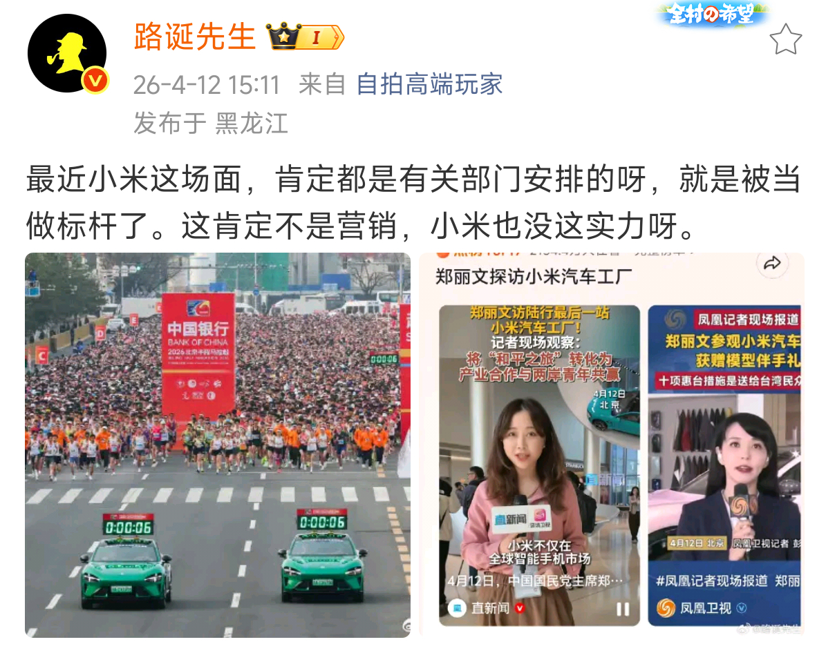 郑丽文试乘小米汽车郑丽文参访小米汽车工厂,卢伟冰接待。试乘后直言"只有一个字,赞
